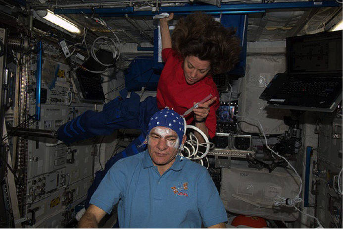 Expérience utilisant un électroencéphalographe à bord de la Station Spatiale Internationale. Crédit : ESA, Neurospat
