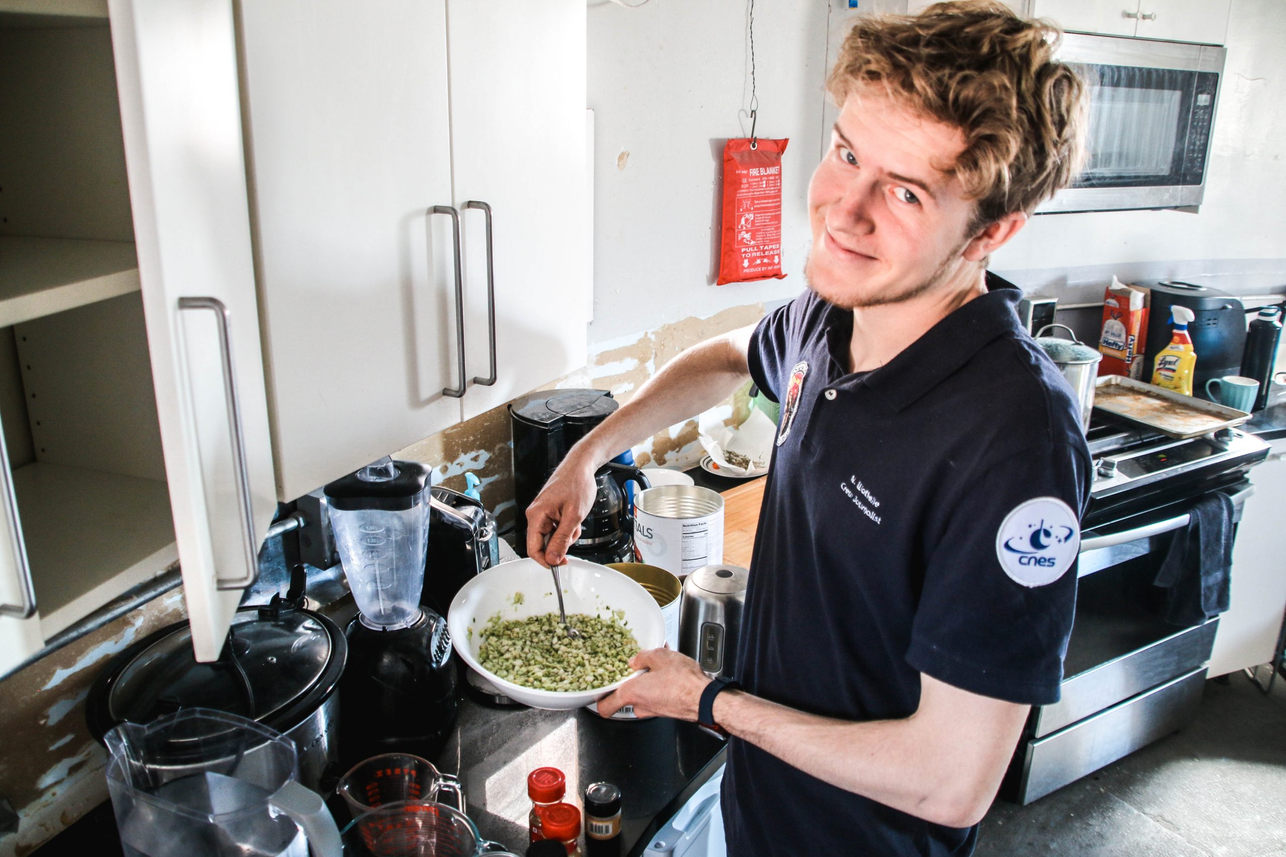 Pour le travail réalisé en intérieur aujourd’hui, nous avons réalisé notre deuxième session d’échographie avec l’appareil Sonoscanner et le protocole du CNES. Depuis la semaine dernière, nous avons reçu quelques consignes ajustées des chercheurs, et c’était utile ! Je crois que tout le monde a amélioré ses « talents en échographie », en trouvant en moyenne un organe de plus que la précédente session. Sur ce sujet, Elena est très impressionnante pour une étudiante en ingénierie, en réalisant deux cartons pleins ! Elle envisage presque une reconversion… L’ensemble de l’équipage apprécie vraiment cette expérience, et s’implique avec plaisir à donner ses retours sur ce protocole original. C’est un vrai plaisir de travailler dans ces conditions !
