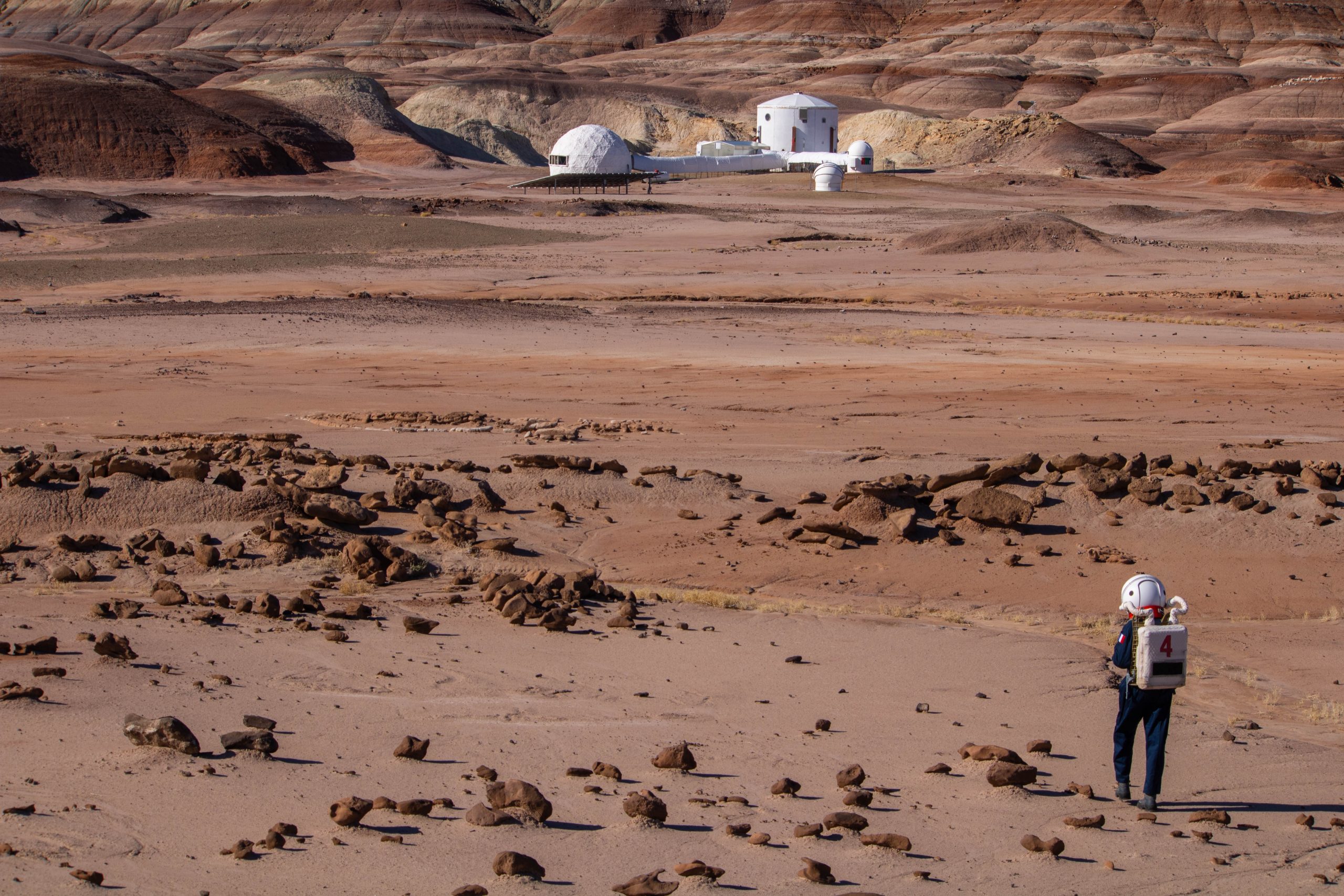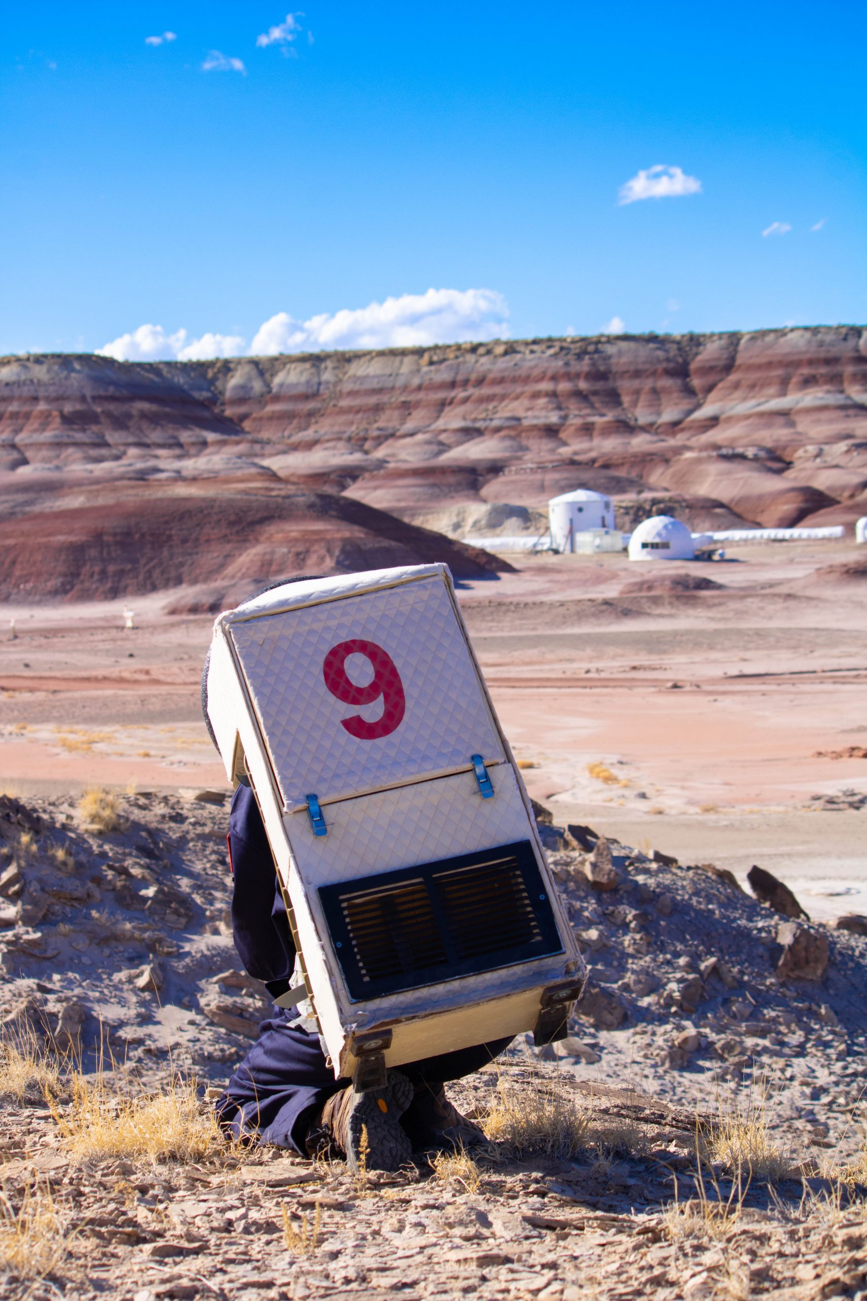 11:19AM: I just came back from my first EVA, an ExtraVehicular Activity. Meddi, Quentin, Robin and I did our first training. We found the perfect place for the atmospheric instruments: Marble Rituals. We will set them up later during the week. The analog Martian desert looked very vast, such as the sky that overlooked it. I had the honour to step on its ground first, and to pronounce our first words: « it’s a small step for me, a bigger one for Quentin ».