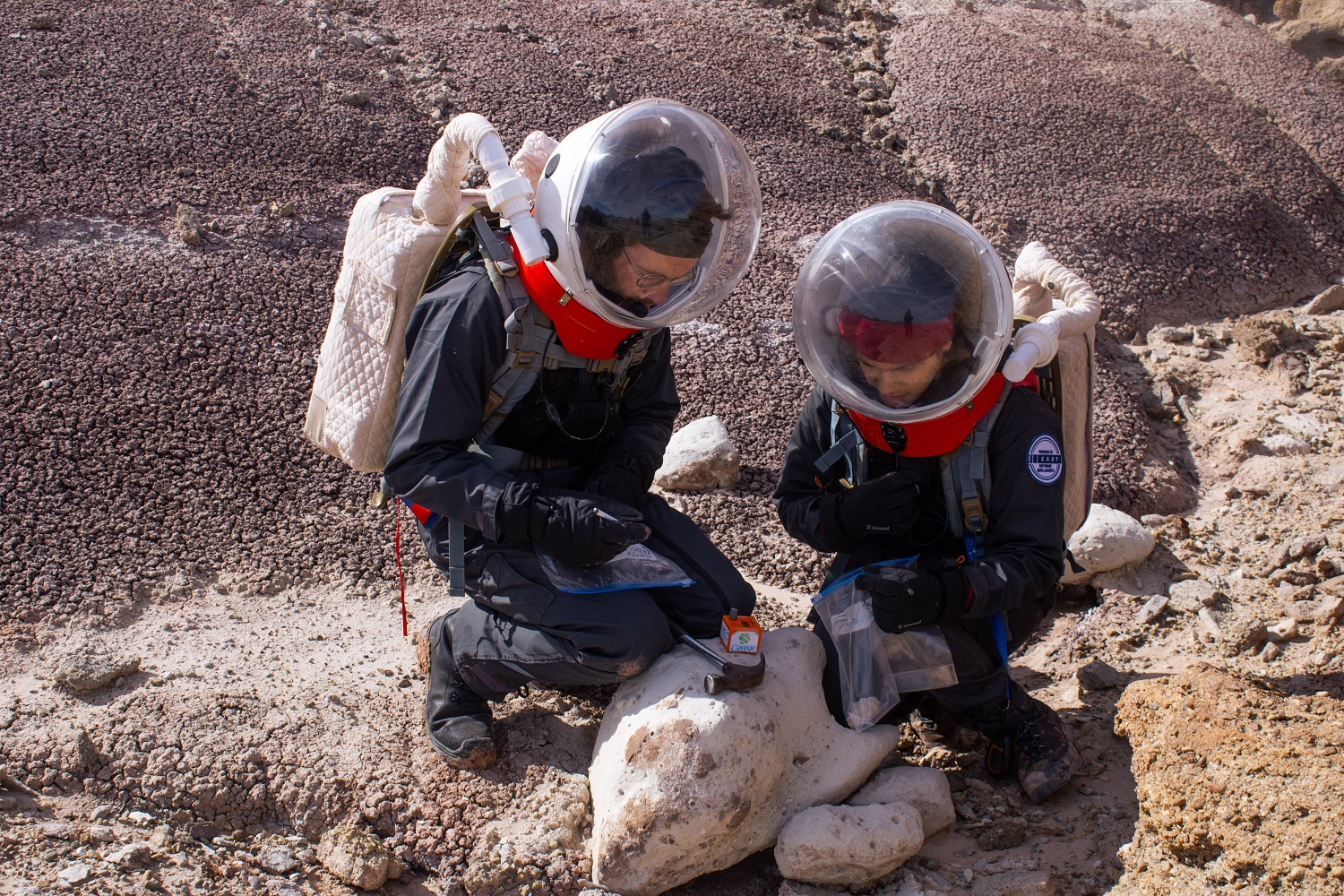 It felt great to go a bit further away from the Hab than usual and see different landscapes, and also have new EVA objectives! The latter having been achieved, we also had a lot of fun joking with each other over the radio as we were collecting the samples. Weary but happy about our outing, we brushed off our dusty knees and returned to the Hab to a great meal prepared by Corentin. Quentin tried making bread, not quite up to his expectations…