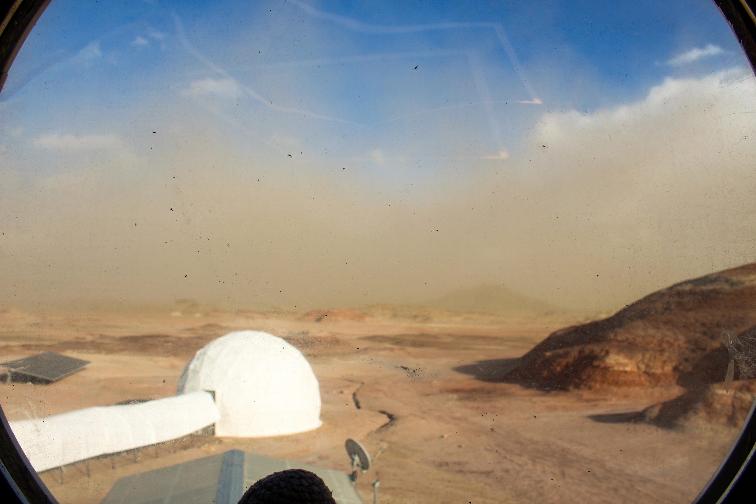 When we woke up, the Crew heard loud wind gusts against the Hab’s walls. But we were not surprised: we were advised yesterday that today’s weather wouldn’t be nice. This is why we rescheduled the EVA to the morning, even though it was initially planned for the afternoon. Originally, this EVA was designed to be an easy EVA, just to change batteries of the atmospheric instruments. But, with the wind speed and the rain announced, we had no other choice than to retrieve some instruments in the station, and protect others from the wind. LOAC was loaded in the back of Curiosity rover, brought back to the station, and the Field Mill packed with foams and duct tape in case the mast tips over and breaks because of the wind gusts. We heard the wind blowing harder and harder throughout the day, and we were glad to know the atmospheric instruments were safe.