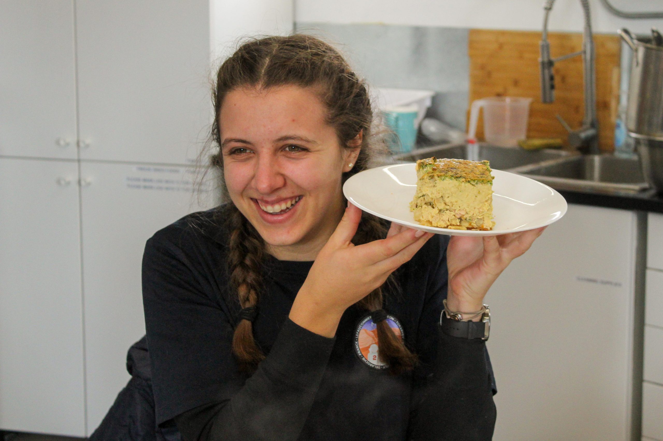 For lunch, we wanted to innovate for our dehydrated meals by cooking a quiche, with homemade dough. We were afraid to leave the table still hungry, so we made a large quantity of it. A very large quantity! We were unable to finish it entirely, and nobody felt hungry during all afternoon!