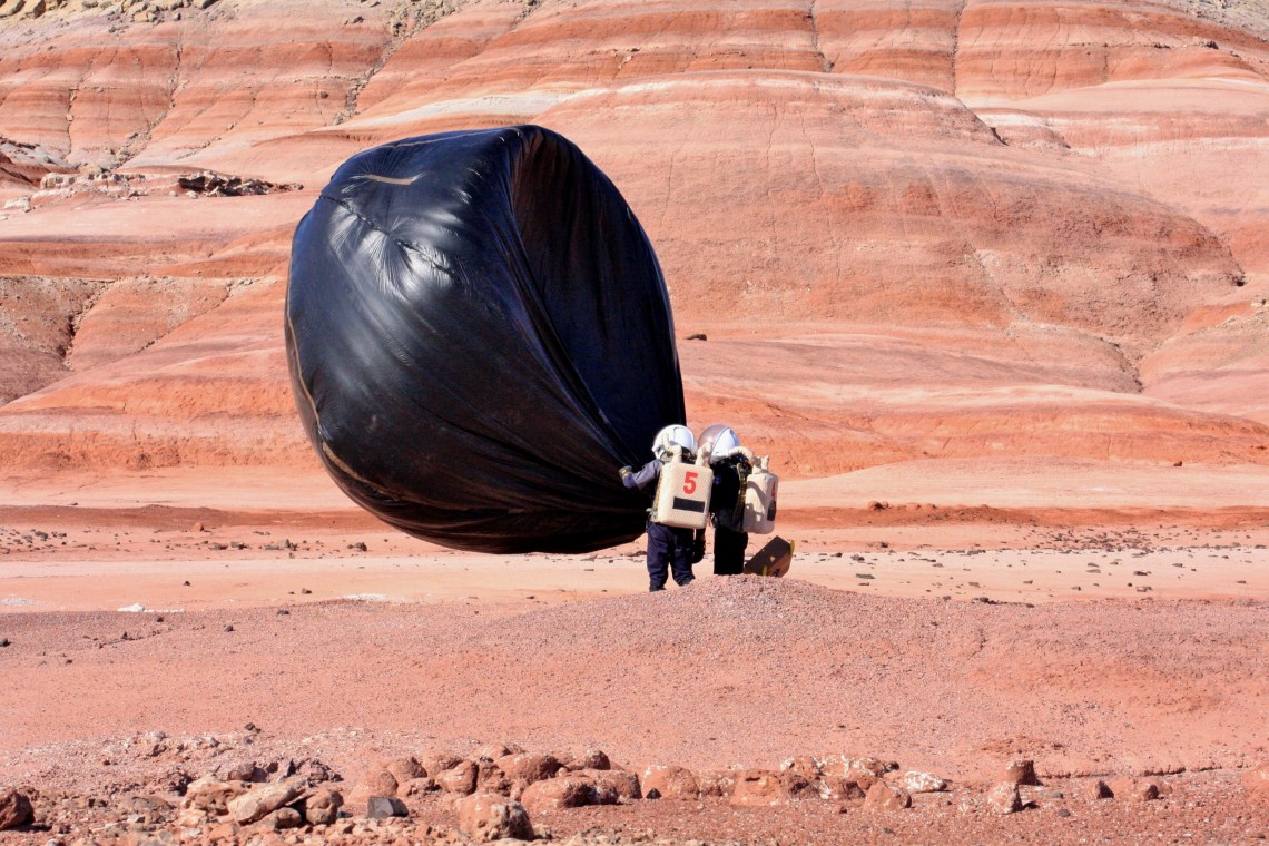 The EVA went fine on the North, with some new beautiful shots from Louis, while the balloon was doing fine, oscillating slowly from the ground to 50 meters high. When they came back, we had prepared every pan and bowl we had in the hab, for an emergency refill. The 4 gallons we had didn’t allow us to cook the meal. The EVA members, back from their mission, spent 15 minutes and lost a lot of water filling up all the stuff we had let in the engineering airlock. About 5 minutes after all this trouble, the main pump decided to restart working… Water must have frozen in the outdoor pipe too. Anyway it ended up well even if we had to move around 10 gallons of water in the stairs (that are closer to a ladder by the way).