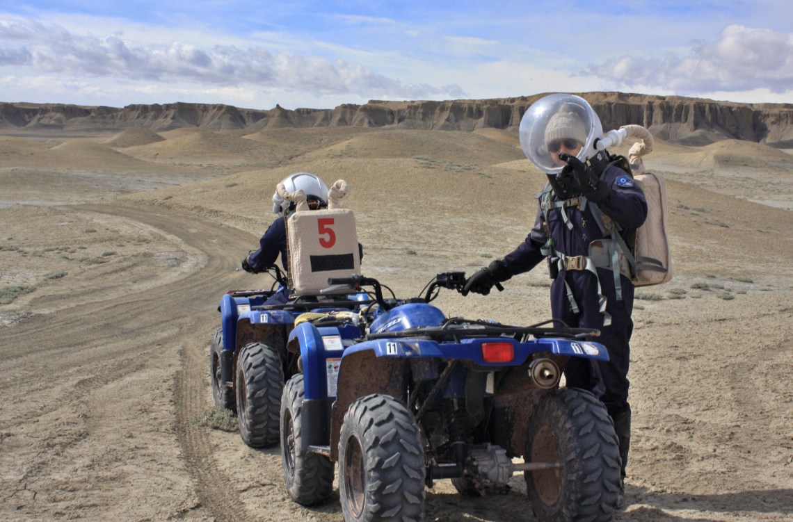 The first encounter with the team was very reassuring: they were science reporters, knowing why they came here, filming a whole documentary on the subject, being well informed, so that they did not just want to film us as animals in a cage, to gain audience. They were very respectful with the rules of the station, did their best not to disturb us, even if being twelve in the tiny hab was a bit oppressing. After a quick talk, some shots of the hab, Arthur, Louis and Mouâdh left with the reporter in EVA, the journalist crew following them in a big SUV. They first went to the seismometer, checked it, took shots while Mouâdh presented it, and then, headed North, to reproduce yesterday’s experiment of the sextant, on “the Moon”. Like during most of the simulation, the wind preventing us from using the atmospheric balloon.
