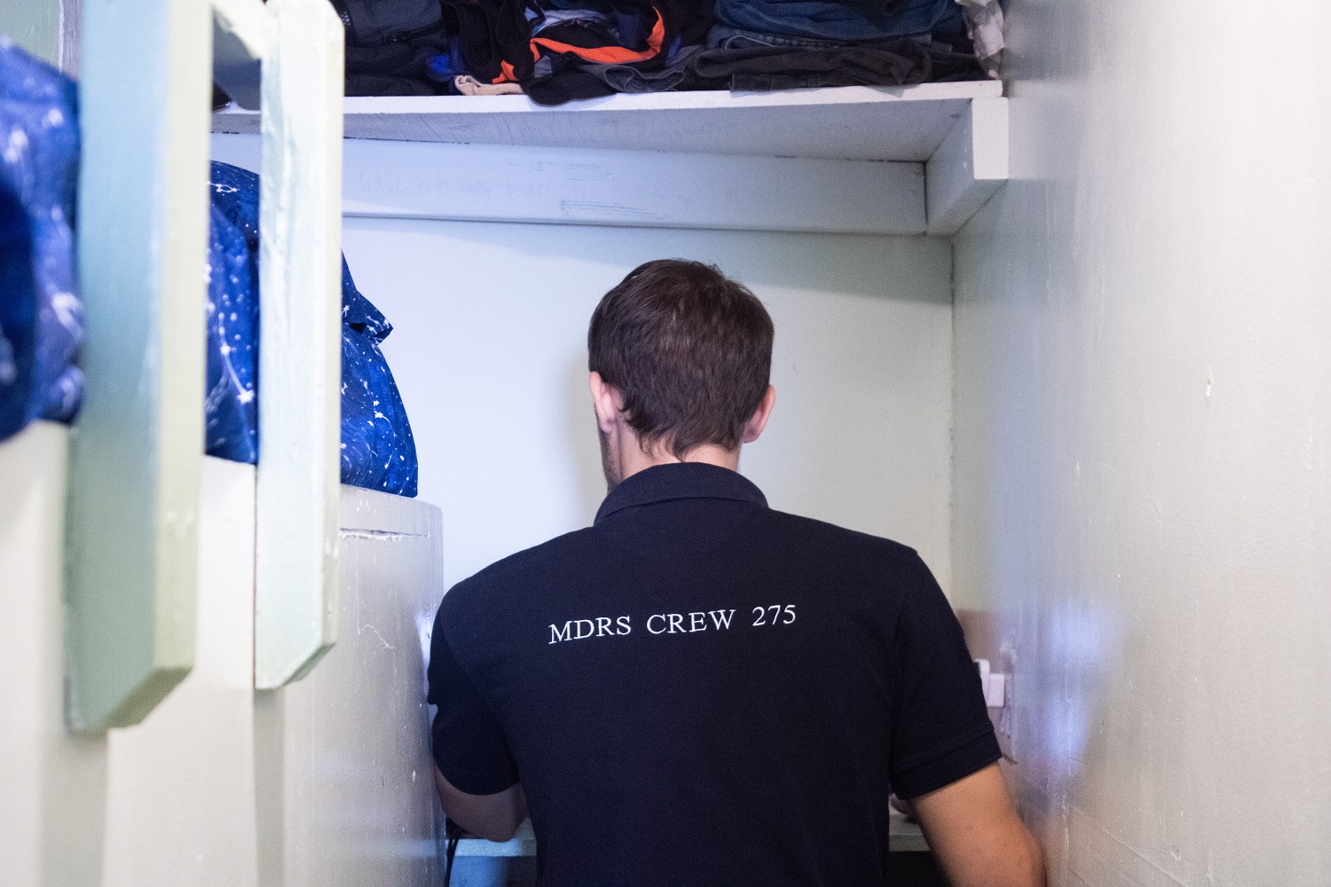 Quentin and Alexandre mentioned how big the station now seemed, as the four of us were gathered on the Upper Deck. Only then did I fully realize that the operations would become slightly more difficult. Indeed, for safety’s sake, we make sure that at least two of us remain in the Hab at all times. Everyone thus had to change their habits, like Adrien who watered the crops earlier than usual so that he could be at the Hab during this morning’s EVA. It was supposed to be a routine activity, as Quentin and I simply had to change the batteries and retrieve the data of our atmospheric instruments. However, even the easiest tasks feel more complex in this context.