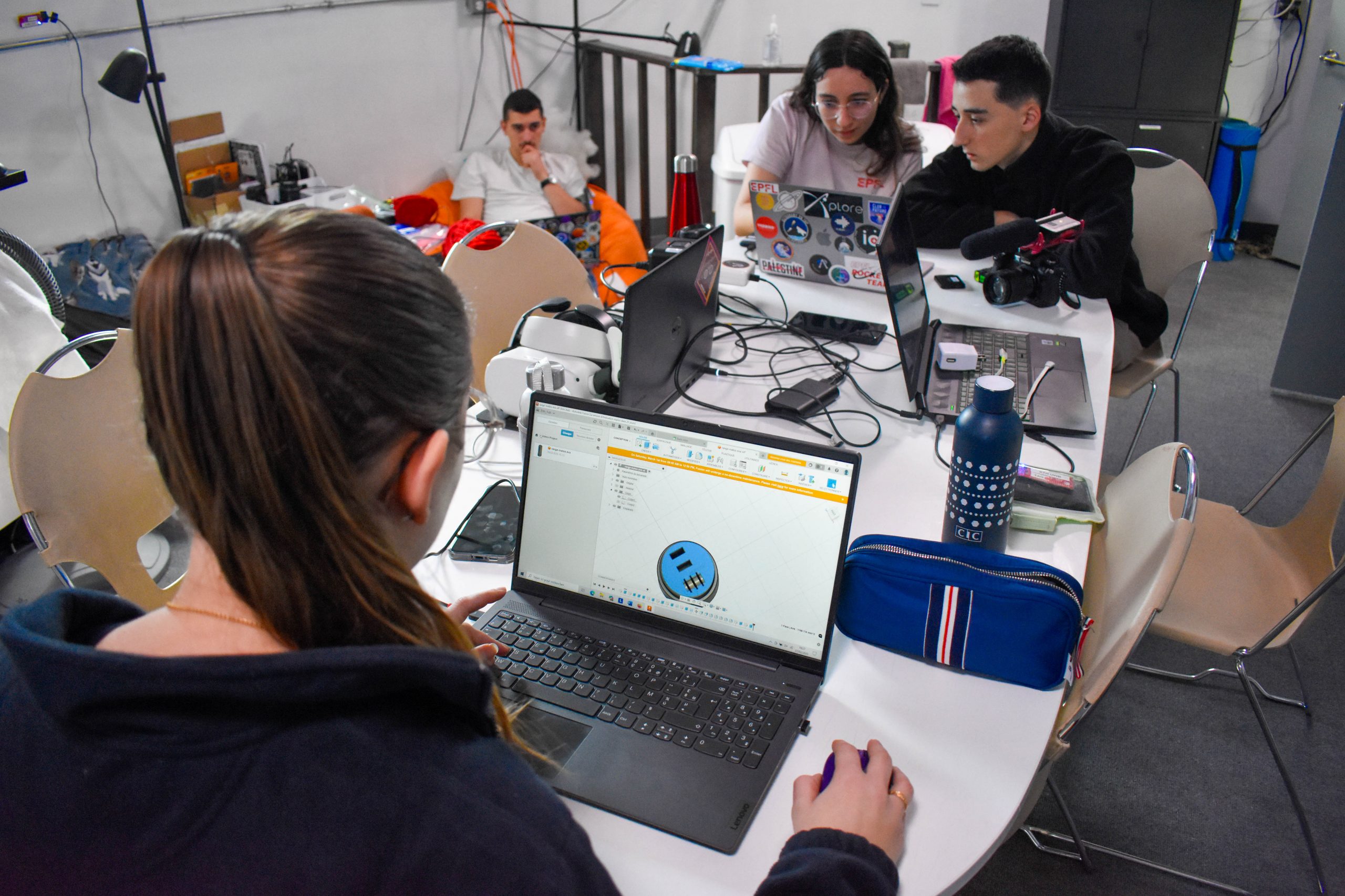 Cet après-midi, l’imprimante ne chôme pas ! Elle a tout plein de pièces du rover SUPAEROMOON à créer. L’objectif de cette expérience est d’imaginer le montage d’un rover comme lors d’une mission martienne futuriste. De sorte à économiser de l’espace de stockage et d’éviter de voir nos pièces cassées durant le trajet, nous apportons avec nous la matière première du rover ainsi que les éléments d’électronique et batteries que nous ne pouvons pas usiner sur place. On imprime ensuite toute la structure, et on peut monter notre rover tout neuf ! Ce projet met en scène le résultat du travail de nombreux étudiants, puisqu’il est issu de la collaboration entre deux clubs de l’ISAE-SUPAERO, le club SUPAEROMOON et le club MARS !