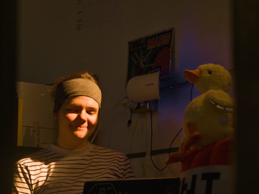 Félix, Célia, and Lou headed to the RAM to start installing the Lab’Ex experiment, the pieces of which have been previously 3D printed. We are now completing our daily asks while waiting for the communication window to Open. We are listening to the wind blowing against the walls of the HAB, the sign of an incoming storm.