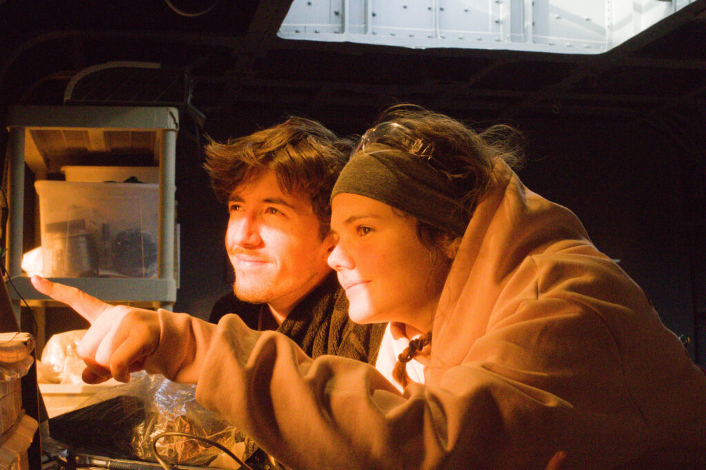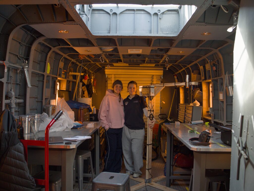 measures the density of particles in the air depending on the speed of the wind, with many uses in the study of particles and their dispersion. The Field Mill aims to study the electrical field in the air. The storm is getting stronger by the day, therefore, we might have to wait until the day after tomorrow to install it. During this newly available time, Célia and Lou installed the Field Mill on its support in the RAM, and I continued installing AMAIA in the HAB.